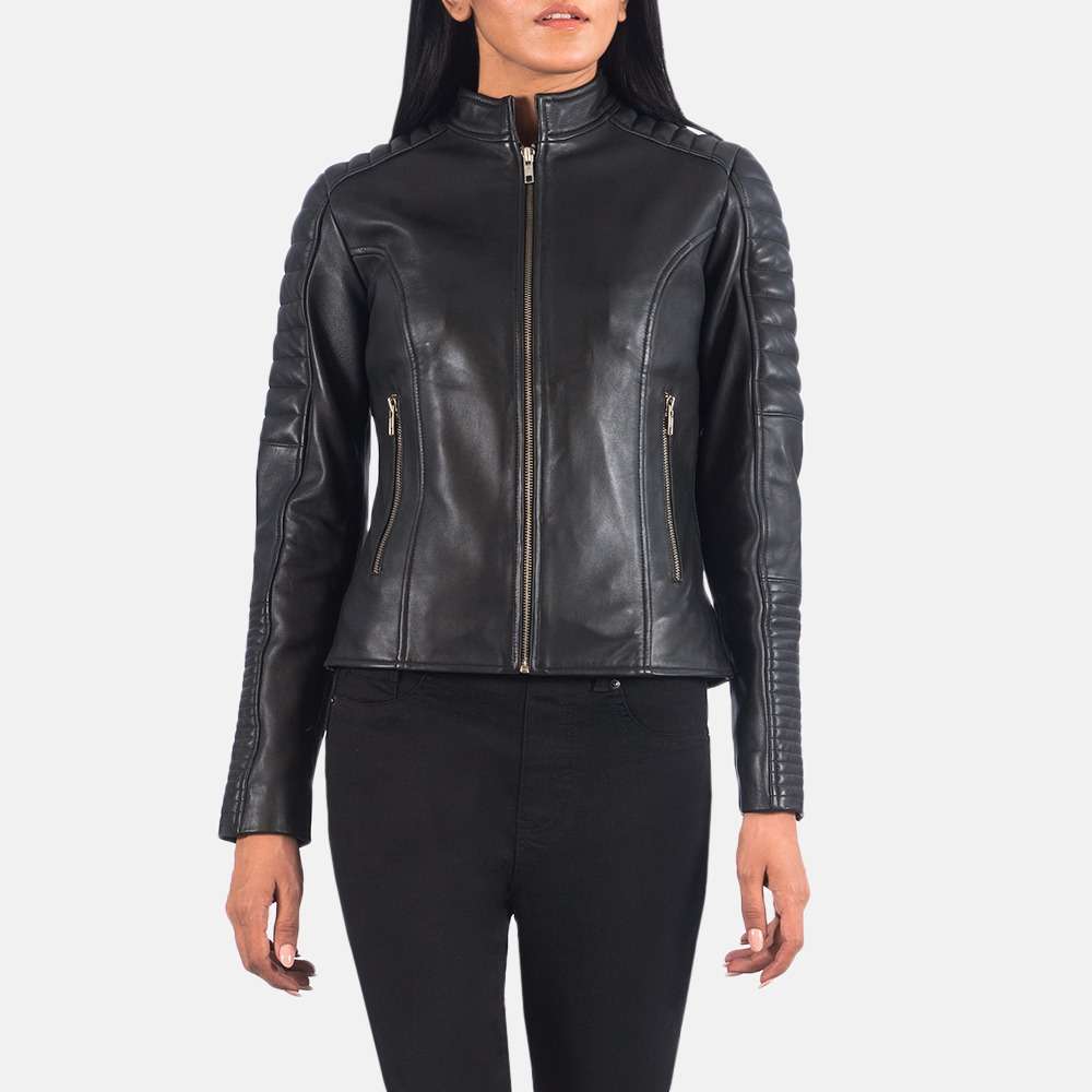 Adalyn Quilted Black Leather Biker Jacket
