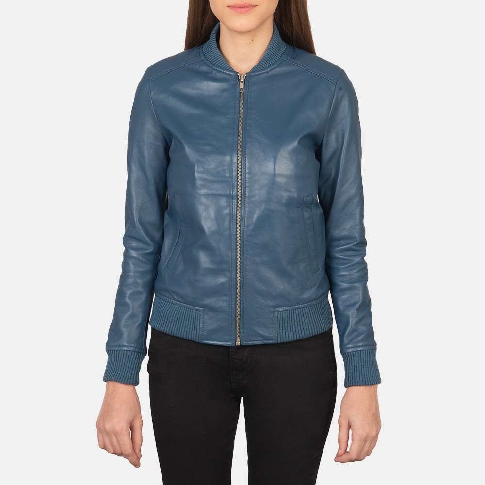 The Bliss Blue Leather Bomber Jacket features premium sheepskin leather with a semi-aniline finish, offering a modern twist on a timeless design. Complete with rib-knit collar and cuffs, this jacket is perfect for any occasion.