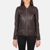 The Bliss Maroon Leather Bomber Jacket blends sheepskin leather with a semi-aniline finish for a luxurious look. With a varsity-style rib knit collar and cuffs, this bomber jacket offers both comfort and timeless style.