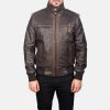 Glen Street Dark Brown Goatskin Leather Bomber Jacket with Rib-Knit Cuffs